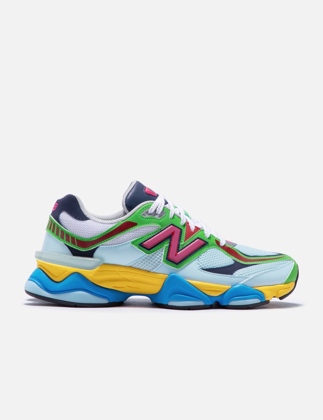 - New Balance - 9060 - Mesh upper with leather overlays - Lace-up closure - Woven logo label on the tongue - Signature N logo patch at the sides - Logo patch on the tongue - Logo embroidery on the heel counter - Padded collar - ABZORB and SBS cushioning midsole - Rubber diamond-patterned outsole - Color: Beach Glass - Style Code: U9060NBN - Material: Mesh, Leather, Textile, Rubber - See more Sneakers and Shoes