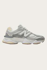 The 9060 is a new expression of the refined style and innovation-led design that have made the 99X series home to some of the most iconic models in New Balance history. The 9060 reinterprets familiar elements sourced from classic 99X models with a warped sensibility inspired by the proudly futuristic, visible tech aesthetic of the Y2K era. Sway bars, taken from the 990, are expanded and utilized throughout the entire upper for a sense of visible motion, while wavy lines and scaled up proportions on a sculpted pod midsole place an exaggerated emphasis on the familiar cushioning platforms of ABZORB and SBS. Oslate Grey/Calcium colorway.