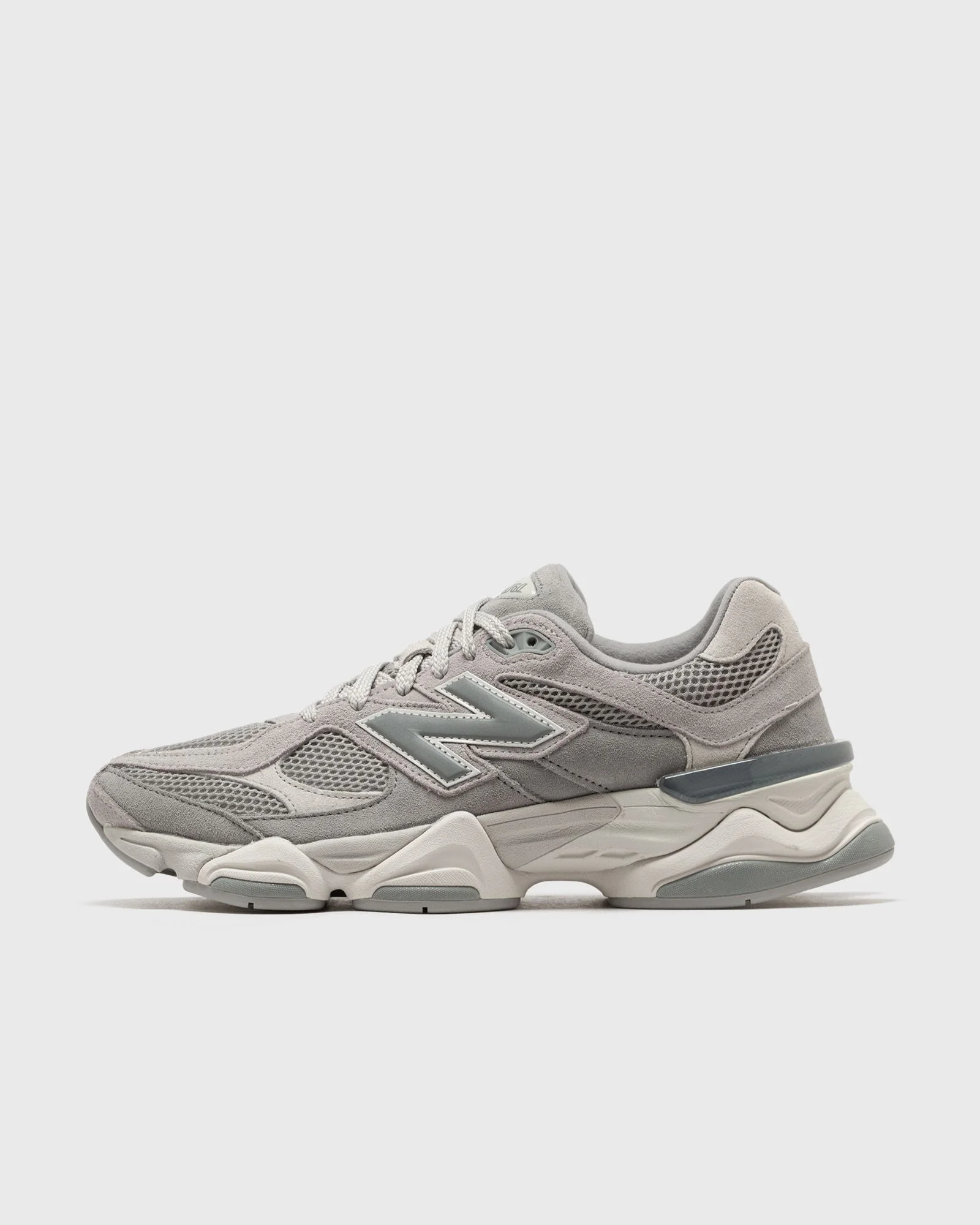 The New Balance 9060 reinterprets familiar elements of the label's popular 99X models, drawing inspiration from the futuristic visible aesthetic of the Y2K era. Stabilizers throughout the upper provide a sense of visible movement, while undulating lines and scaled-down proportions on a sculpted pod midsole highlight familiar ABZORB and SBS cushioning systems. - Dual-density midsole with ABZORB and SBS cushioning - Clear CR element at heel - Mesh upper with suede inserts Article number: U9060ERD Gender: men,women Color: SLATE GREY Material: 30% Rubber, 40% Leather, 30% Synthetic/Textile