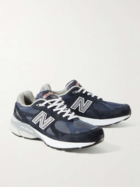 - Navy suede and mesh - Padded collars, designer emblems, rubber trims, mesh linings, ENCAP® midsoles, Ndurance rubber soles - Lace-up - Style number: M990BS3 - New Balance follows its own size guide, therefore the size stated on the box will differ from the one provided in our size chart. To receive your correct fit, please refer to Size & Fit notes