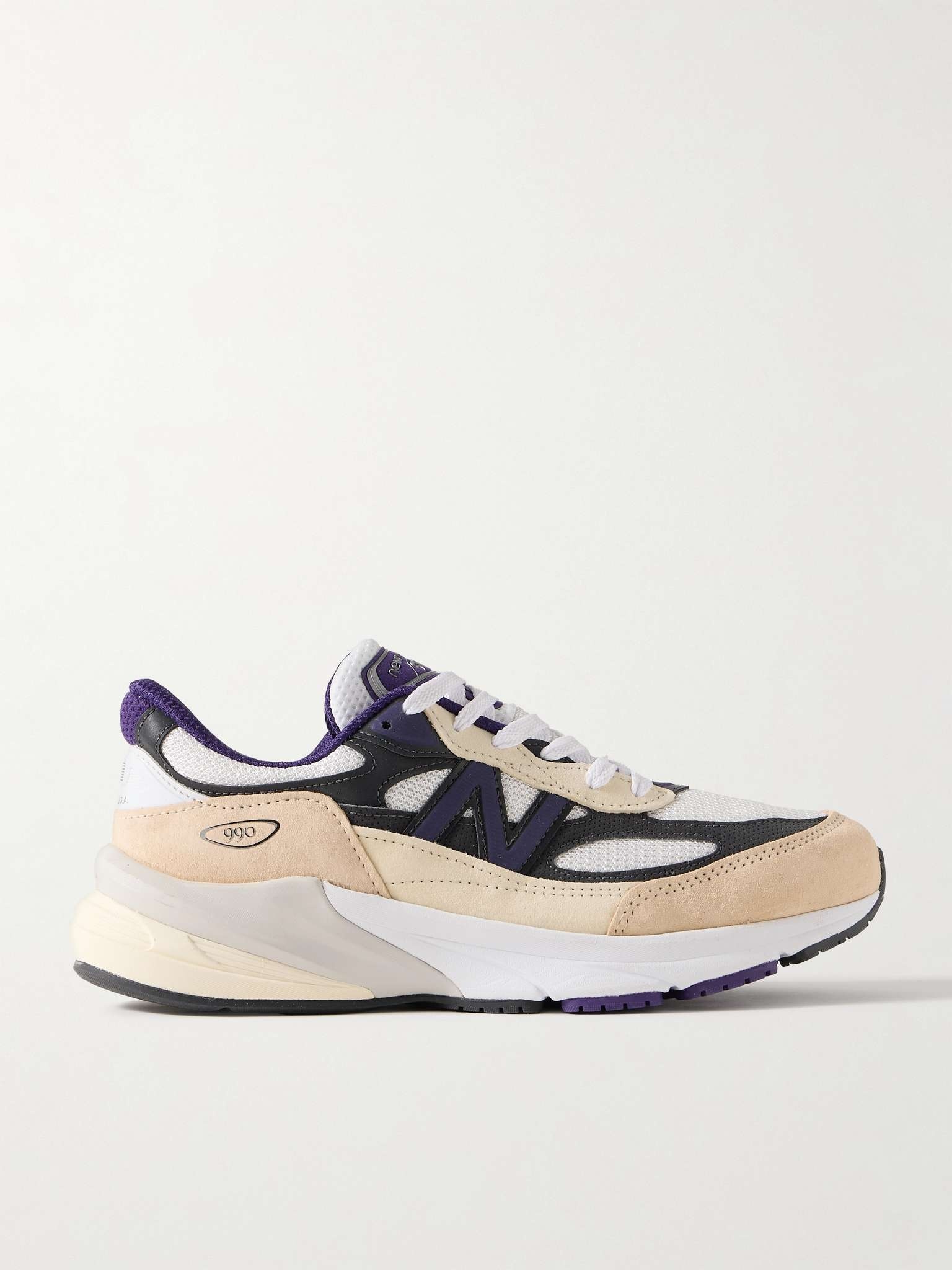 From classic 'dad shoe' to streetwear staple, New Balance's '990' sneakers have earned cult status over the last few years. Made from leather, suede and mesh, this 'v6' pair maintains the original style's panelled design but has a chunkier sole. Inside, you'll feel slightly more cushioning and support thanks to the addition of FuelCell foam. Size & Fit - UK 5 = US 5.5/ EU 38 - UK 5.5 = US 6/ EU 38.5 - UK 6 = US 6.5/ EU 39.5 - UK 6.5 = US 7/ EU 40 - UK 7 = US 7.5/ EU 40.5 - UK 7.5 = US 8/ EU 41.5 - UK 8 = US 8.5/ EU 42 - UK 8.5 = US 9/ EU 42.5 - UK 9 = US 9.5/ EU 43 - UK 9.5 = US 10/ EU 44 - UK 10 = US 10.5/ EU 44.5 - UK 10.5 = US 11/ EU 45 - UK 11 = US 11.5/ EU 45.5 - UK 11.5 = US 12/ EU 46.5 - UK 12 = US 12.5/ EU 47 - UK 12.5 = US 13/ EU 47.5 - UK 13.5 = US 14/ EU 49 Details & Care - Beige and cream suede, white and purple mesh, dark-purple and charcoal leather - Lace-up - Style number: U990VB6 - New Balance follows its own size guide, therefore the size stated on the box will differ from the one provided in our size chart. To receive your correct fit, please refer to Size & Fit notes
