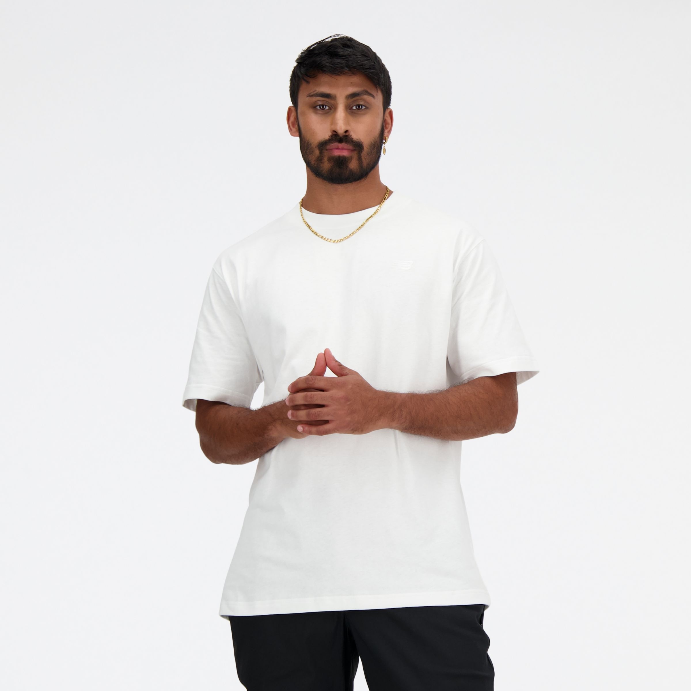 This classic cotton tee features an embroidered logo for a premium look. Product Details Features - Embroidered NB logo - Short sleeves - Imported - Relaxed, roomy fit, designed to fit loosely around the body - Size & Fit Guide Material - Soft cotton jersey material - 100% cotton Style #: MT41533WT