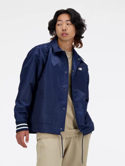 A lightweight woven jacket with a classic design. Product Details Features - Printed NB logo - Long sleeves - Imported - Relaxed, roomy fit, designed to fit loosely around the body - Size & Fit Guide Material - Lightweight woven construction - 100% recycled nylon Style #: MJ41506BK