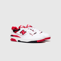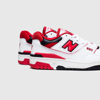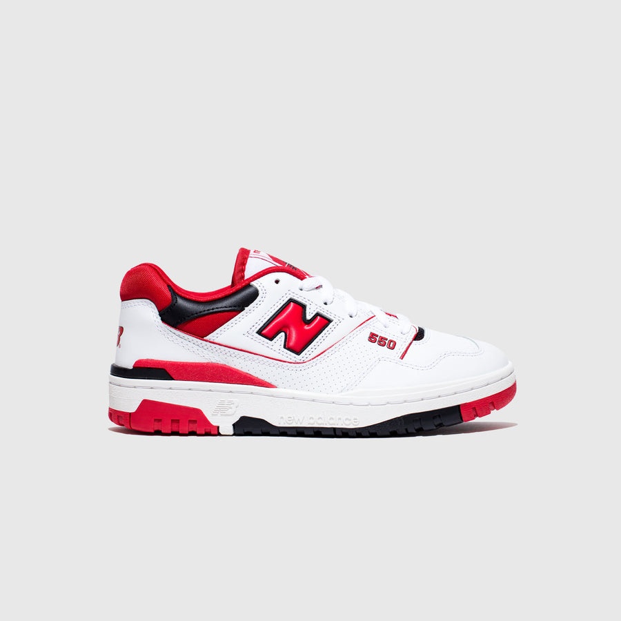 - BB550SE1 - White/Team Red - Originally released in 1989, the surprise-hit New Balance 550 has made a return as a low-top basketball-turned-lifestyle sneaker - Leather upper - Padded mesh lining - Perforations throughout to improve breathability - New Balance branding featured on the tongue, side, heel, collar, sock liner, and outsole - Lace closure - Rubber outsole