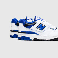 - BB550SN1 - White/Team Royal - Originally released in 1989, the surprise-hit New Balance 550 has made a return as a low-top basketball-turned-lifestyle sneaker - Leather upper - Padded mesh lining - Perforations throughout to improve breathability - New Balance branding featured on the tongue, side, heel, collar, sock liner, and outsole - Lace closure - Rubber outsole