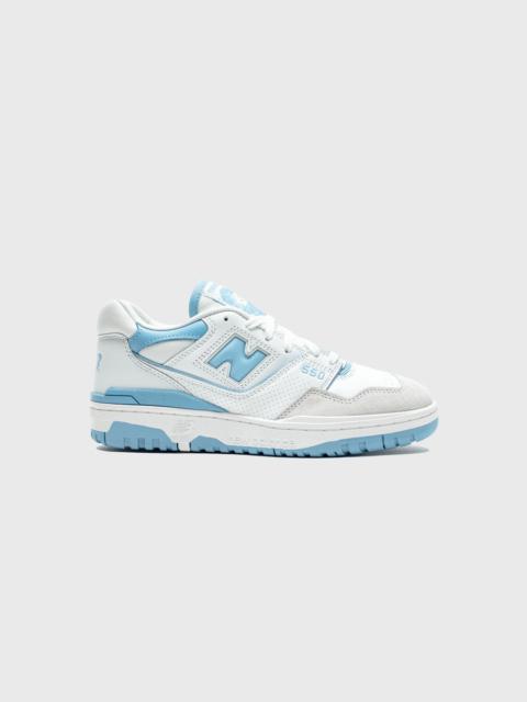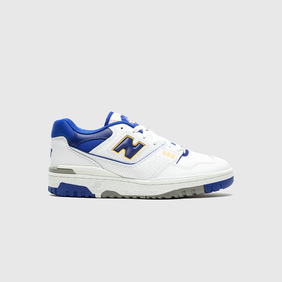 - BB550WTN - White/Infinity Blue - Originally released in 1989, the surprise-hit New Balance 550 has made a return as a low-top basketball-turned-lifestyle sneaker - Leather upper with mesh accents - Perforated leather details - New Balance branding featured on the tongue, side, heel, collar, sock liner, and outsole - Lace closure - Rubber outsole
