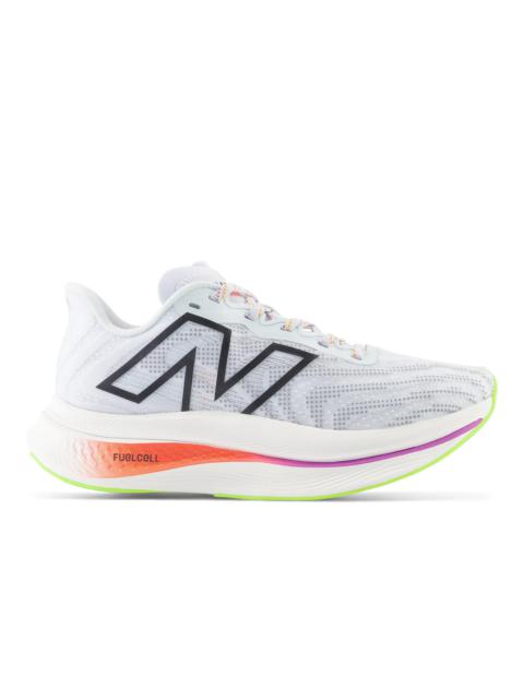 Built for half- and full-marathon training, these shoes deliver comfort every step of the way. Features - FuelCell midsole foam with approximately 3% bio-based content delivers a propulsive feel to help drive you forward. Bio-based content is made from renewable resources to help reduce our carbon footprint. - Energy Arc pairs sport-specific carbon fiber plate geometry with strategic midsole voids, designed to increase stored energy to deliver a higher amount of total energy returned - Angular midsole design reduces weight - Outsole designed for superior traction - 271 grams (9.6 oz) Material - Soft, plush mesh upper for breathability and comfort Style #: MRCXLW4
