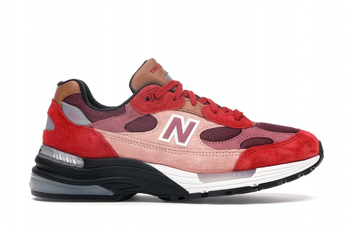 The New Balance 992 Joe Freshgoods No Emotions Are Emotions is a product of the collaboration between New Balance and footwear designer Joe Freshgoods. A revitalized iteration of the classic New Balance 992, this sneaker features an upper constructed using burgundy mesh underlays with tan leather detailing and suede overlays in red and pink. Anchoring this upper is a foam midsole, white toward the forefoot and black towards the rear, and a black rubber outsole. The New Balance 992 Joe Freshgoods No Emotions Are Emotions was released on Valentine’s Day 2020. At the time, this sneaker had a retail price of $175. - Style M992JFG1 - Colorway Pink/Red-Burgundy - Retail Price 175 - Release Date 2020-02-14 - Estimated Retail Price 175 - Featured false