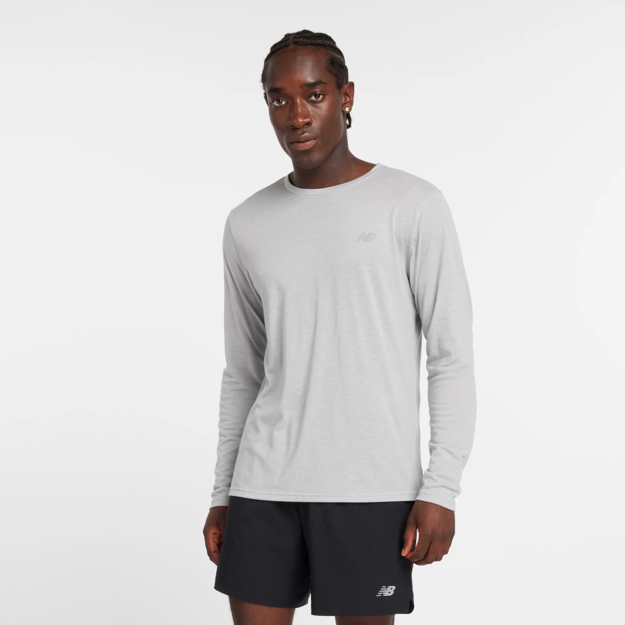 This premium long sleeve tee delivers lightweight comfort to fit your active lifestyle. Features - NB DRY fast-drying technology wicks moisture away from your body to help you work out with ease - Long sleeves - Applique logo branding - Imported Material - Lightweight jersey material - 70% recycled polyester, 30% cotton Style #: MT43150AG