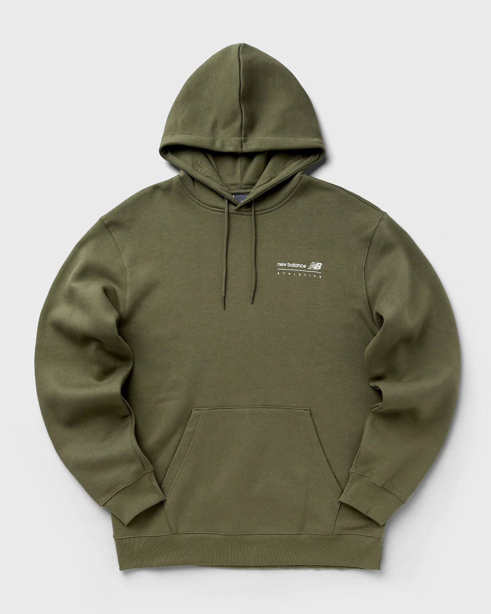 The New Balance hoodie features a soft cotton blend fleece – ideal for everyday wear. With a hood, drawstring, ribbed cuffs, and a combination of embroidery and graphic print on the left chest, it offers subtle brand style. - Combined embroidery and graphic print on the left chest - Hood with drawstring - Ribbed cuffs and hem - Long sleeves Article number: MT53528-DEK Gender: men Color: DARKOLIV Material: 60% Cotton, 40% Polyester
