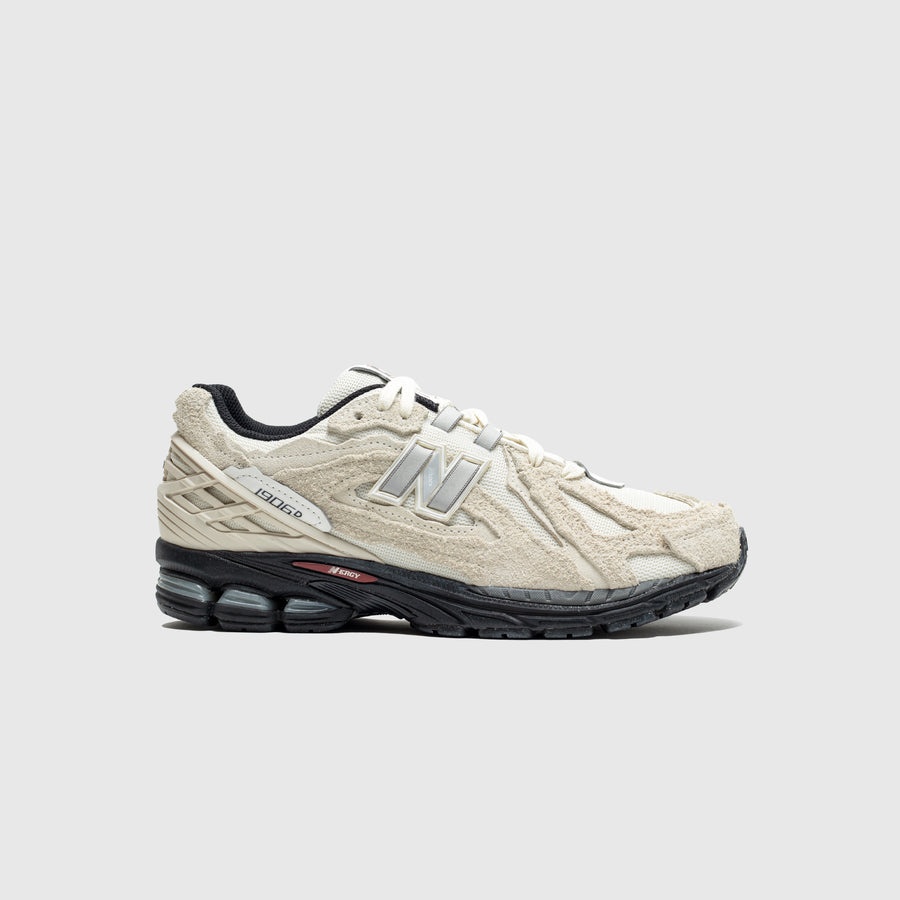 - M1906DB - Turtledove/Black/Bone - With a deconstructed, rough-edged look, New Balance's new 1906R silhouette gets the Refined Future treatment. - Mesh upper - Suede and Leather panel overlays - Web outsole technology - Lace closure - ABZORB SBS cushioning - ACTEVA LITEmidsole - N-ERGYoutsole