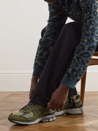 An update on the original running style from the early '00s, New Balance's '2002RD Protection Pack' sneakers are made from panels of leather, nubuck and ripstop and fitted with ABZORB midsoles for premium comfort. The tonal colourway makes them easy to style. Size & Fit - US 5 = UK 3/ EU 35 - US 5.5 = UK 3.5/ EU 36 - US 6 = UK 4/ EU 36.5 - US 6.5 = UK 4.5/ EU 37 - US 7 = UK 5/ EU 37.5 - US 7.5 = UK 5.5/ EU 38 - US 8 = UK 6/ EU 39 - US 8.5 = UK 6.5/ EU 40 - US 9 = UK 7/ EU 40.5 - US 9.5 = UK 7.5/ EU 41 - US 10 = UK 8/ EU 41.5 - US 10.5 = UK 8.5/ EU 42.5 - US 11 = UK 9/ EU 43 - US 11.5 = UK 9.5/ EU 43.5 - US 12 = UK 10/ EU 44 - US 12.5 = UK 10.5/ EU 45 - US 13 = UK 11/ EU 45.5 - US 13.5 = UK 11.5/ EU 46 - US 14 = UK 12/ EU 46.5 Details & Care - Army-green and black nubuck, brown ripstop, army-green and grey leather - Lace-up - Style number: M2002RDN - Designer colour: Dark Moss - New Balance follows its own size guide, therefore the size stated on the box will differ from the one provided in our size chart. To receive your correct fit, please refer to Size & Fit notes
