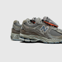 - M2002RVA - Castlerock/Natural Indigo - Mesh upper - Nubuck, hairy suede and thick, textured leather overlays - Raised bump textured leather and mesh tongue - Waxing treatment applied for a weathered, vintage inspired look - Detachable zip-closure mesh pouch at tongue - Lace closure - NERGY foam midsole - Rubber outsole