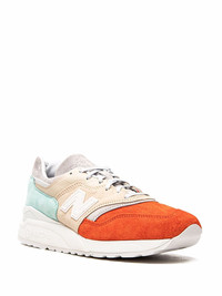 M997 "Mykonos" sneakers Designed in collaboration with designer Ronnie Fieg, the latest New Balance collection celebrates the picturesque island of Mykonos. These M997 low-top sneakers are crafted in a colourway inspired by the Cyclades island group, reflected in seafoam green, orange from beach umbrellas and beige from the warm sand found at the iconic Nammos holiday hotel. Imported Composition Suede 100%