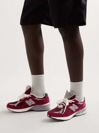 New Balance's '990v3' sneakers have a pared-back, retro feel, thanks to the vision of the 'Made in USA' line's Creative Director, Teddy Santis. Trimmed with black leather, they're made from panels of mesh and suede and set on cushioning Vibram rubber soles. Wear yours with everything from jeans to relaxed tailoring. Size & Fit - UK 5 = US 5.5/EU 38 - UK 5.5 = US 6/EU 38.5 - UK 6 = US 6.5/EU 39.5 - UK 6.5 = US 7/EU 40 - UK 7 = US 7.5/EU 40.5 - UK 7.5 = US 8/EU 41.5 - UK 8 = US 8.5/EU 42 - UK 8.5 = US 9/EU 42.5 - UK 9 = US 9.5/EU 43 - UK 9.5 = US 10/EU 44 - UK 10 = US 10.5/EU 44.5 - UK 10.5 = US 11/EU 45 - UK 11 = US 11.5/EU 45.5 - UK 11.5 = US 12/EU 46.5 - UK 12 = US 12.5/EU 47 - UK 12.5 = US 13/EU 47.5 - UK 13.5 = US 14/EU 49 - Fits true to size. Take your normal size Details & Care - Red mesh, red and grey suede, black leather - Lace-up - Style number: M990TF3 - New Balance follows its own size guide, therefore the size stated on the box will differ from the one provided in our size chart. To receive your correct fit, please refer to Size & Fit notes - This item has been imported