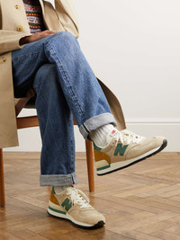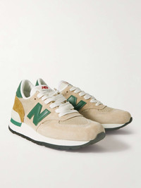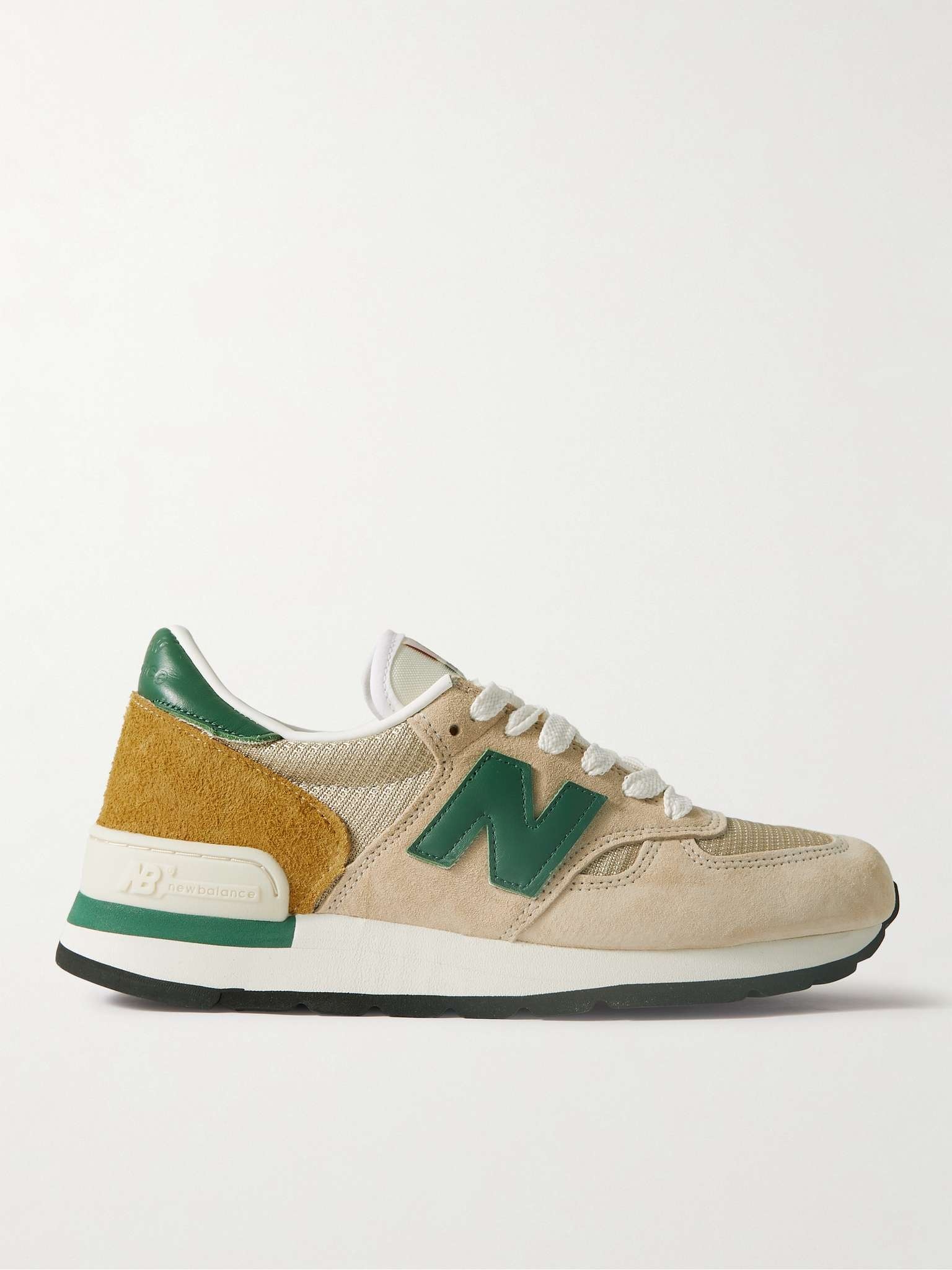 New Balance's 'MiUS 990' sneakers are proudly made in the US and the result of years of sporting innovation. This pair is panelled from contrasts of plush suede and breathable mesh in earthy tones and set on ENCAP midsoles that provide support underfoot. They're detailed with logos at the sides and across each leather heel tab. Size & Fit - UK 5 = US 5.5/ EU 38 - UK 5.5 = US 6/ EU 38.5 - UK 6 = US 6.5/ EU 39.5 - UK 6.5 = US 7/ EU 40 - UK 7 = US 7.5/ EU 40.5 - UK 7.5 = US 8/ EU 41.5 - UK 8 = US 8.5/ EU 42 - UK 8.5 = US 9/ EU 42.5 - UK 9 = US 9.5/ EU 43 - UK 9.5 = US 10/ EU 44 - UK 10 = US 10.5/ EU 44.5 - UK 10.5 = US 11/ EU 45 - UK 11 = US 11.5/ EU 45.5 - UK 11.5 = US 12/ EU 46.5 - UK 12 = US 12.5/ EU 47 - UK 12.5 = US 13/ EU 47.5 - UK 13.5 = US 14/ EU 49 Details & Care - Beige and mustard suede, beige mesh, green leather (Pig) - Lace-up - Style number: M990TG1 - New Balance follows its own size guide, therefore the size stated on the box will differ from the one provided in our size chart. To receive your correct fit, please refer to Size & Fit notes - This item has been imported