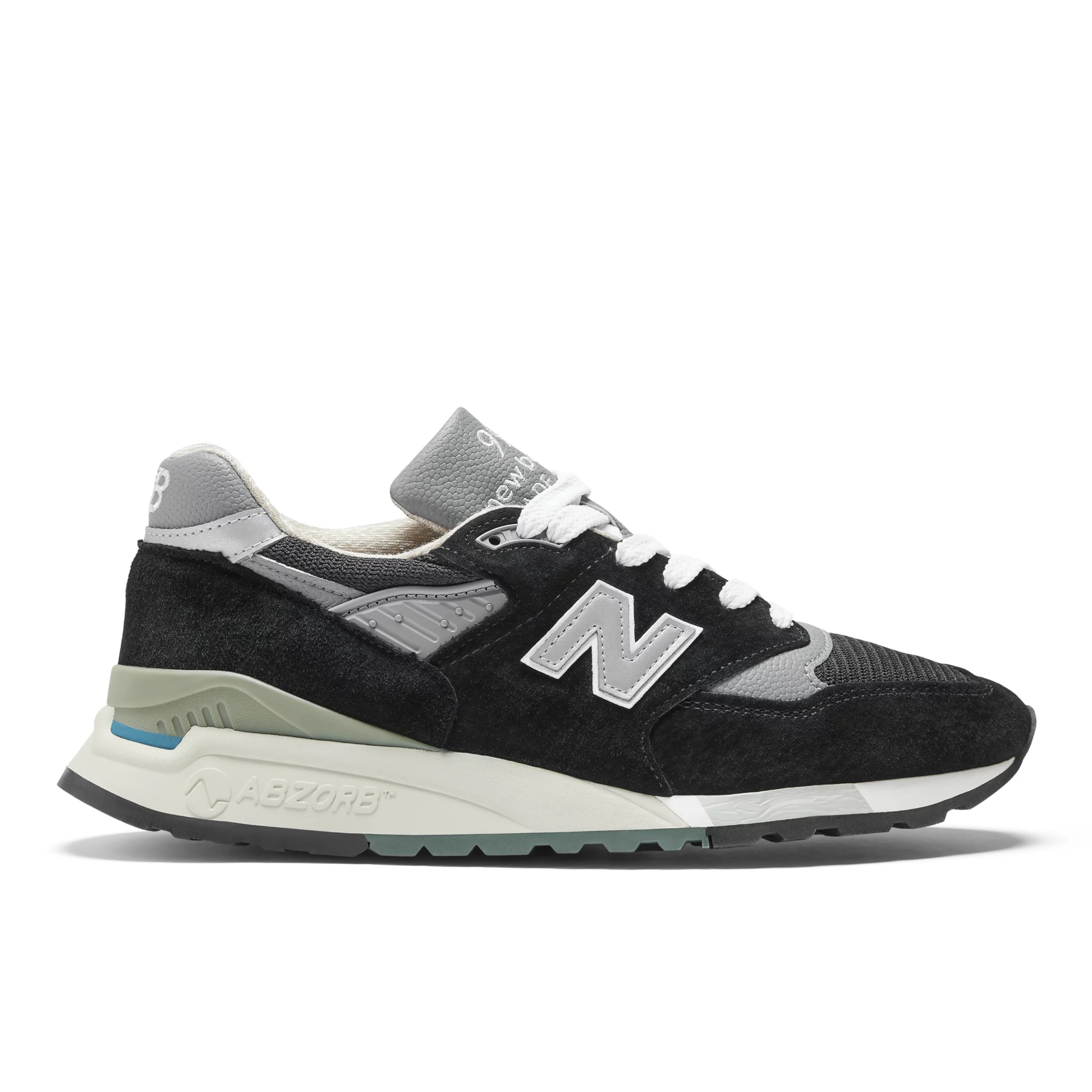 A true embodiment of New Balance's timeless design and performance innovation returns to the MADE in USA lineup. The original 998, released in 1993, was the first shoe to utilize ABZORB cushioning. This revolutionary step forward in shock absorption was matched visually with a sleek updating of the classic 99X series look. The MADE in USA 998 features premium pigskin suede and mesh upper construction, in a classic black colorway. New Balance MADE U.S. footwear contains a domestic value of 70% or more. MADE makes up a limited portion of New Balance’s U.S. sales. Product Details Features - ABZORB midsole absorbs impact through a combination of cushioning and compression resistance - New Balance MADE U.S. footwear contains a domestic value of 70% or more. MADE makes up a limited portion of New Balance’s U.S. sales. - Pigskin/ Mesh - Adjustable lace closure - Size & Fit Guide Material - Pigskin suede and mesh upper material Style #: U998BL