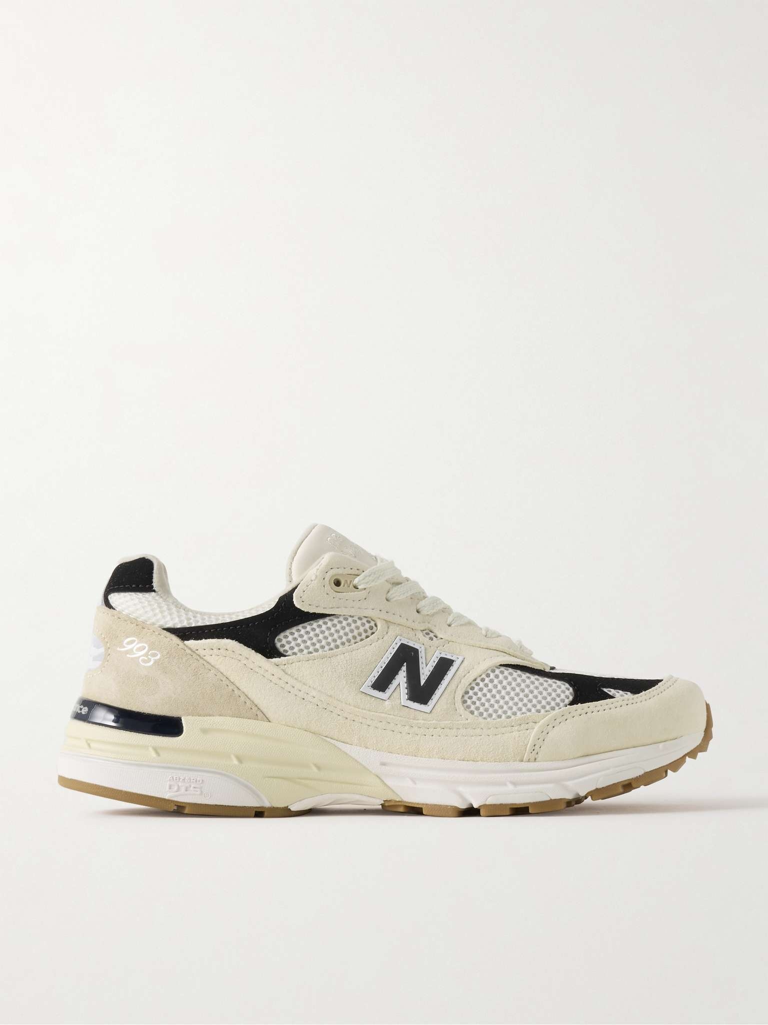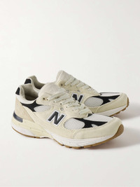 Part of the 'Made in USA' line, New Balance's '993' sneakers are timeless classics. This pair is made from panels of suede and mesh set on ABZORB midsoles for all-day comfort. Size & Fit - UK 5 = US 5.5/ EU 38 - UK 5.5 = US 6/ EU 38.5 - UK 6 = US 6.5/ EU 39.5 - UK 6.5 = US 7/ EU 40 - UK 7 = US 7.5/ EU 40.5 - UK 7.5 = US 8/ EU 41.5 - UK 8 = US 8.5/ EU 42 - UK 8.5 = US 9/ EU 42.5 - UK 9 = US 9.5/ EU 43 - UK 9.5 = US 10/ EU 44 - UK 10 = US 10.5/ EU 44.5 - UK 10.5 = US 11/ EU 45 - UK 11 = US 11.5/ EU 45.5 - UK 11.5 = US 12/ EU 46.5 - UK 12 = US 12.5/ EU 47 - UK 12.5 = US 13/ EU 47.5 - UK 13.5 = US 14/ EU 49 Details & Care - White mesh, beige and cream suede, black and white leather - Lace up - Style number: U993WS - New Balance follows its own size guide, therefore the size stated on the box will differ from the one provided in our size chart. To receive your correct fit, please refer to Size & Fit notes