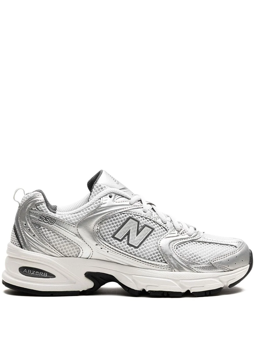 530 "Grey/Grey" sneakers The New Balance 530 takes its runner silhouette from the brand's 2000s archives. This iteration is delivered in a grey colourway, adorned with the brand's iconic 'N' to the side. They benefit from a cushioned ABZORB® midsole for added comfort. Highlights - Light grey - Faux-leather trim - Logo patch to the side - Logo patch at the tongue - Mesh design - Round toe - Front lace-up fastening - Branded insole - Signature abzorb® midsole - Rubber outsole - These styles are supplied by a premium sneaker marketplace. stocking only the most sought-after footwear, they source and curate some of the most hard to find sneakers from around the world. Imported Composition Other fibres 100% SIZE & FIT Measurement HEEL 1.77 in(4.5 cm) Sole height 1.18 in(3 cm)
