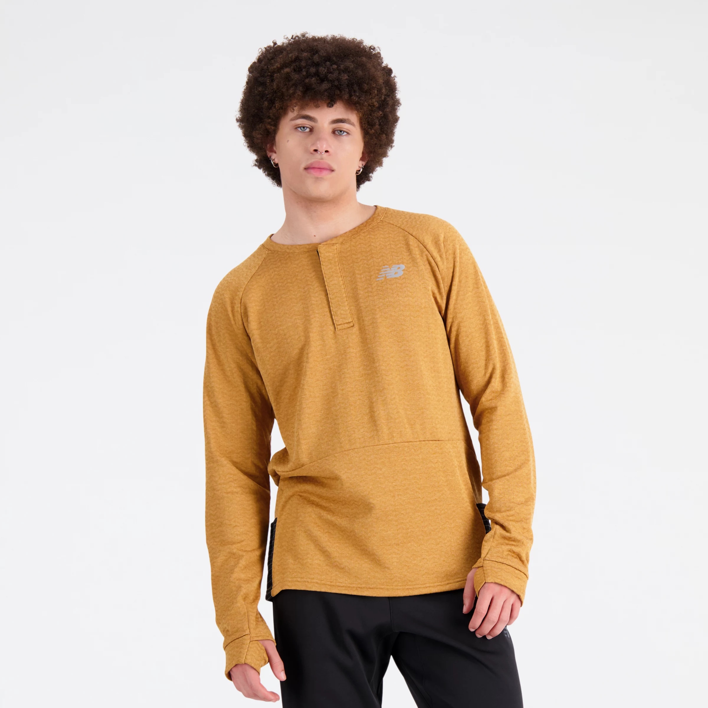 Keep warm on your next run with the NB Heat Grid Crew that features warming and moisture-wicking NB HEAT technology to help you feel comfortable outdoors. Stylish and functional, this long sleeve shirt also includes a snap button henley neckline, storage pockets and has thumb loops for a comfortable fit. Product Details Features - NB HEAT technology helps keep you warm while wicking away moisture - Poly knit material with chevron pattern - Athletic fit built to skim your chest, waist and hip — perfect for active movement with a fit that’s not too tight - Crewneck with snap henley placket - Drop-in pockets for storage - Long sleeves with thumb holes for a comfortable fit - Side panels with luminous fabric designed to catch the light - 71.5% recycled polyester, 25.5% polyester, 3% spandex - Imported Style #: MT33254TCC