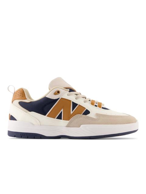The New Balance Numeric 808 by Tiago Lemos is the newest addition to the NB Numeric line. Tiago’s second signature model for New Balance features late-90’s styling with modern NB technology. Full length ABZORB midsole, lace ghillies, Ndurance outsole and a layered upper are complemented by exaggerated N branding, giving the 808 a unique look. Additional features like the re-designed internal heel pod keep the foot locked in and secure. The 808 provides both comfort and durability, with Tiago’s distinct aesthetics. Product Details Features - ABZORB midsole absorbs impact through a combination of cushioning and compression resistance - Suede/mesh upper - Suede overlays in high-wear areas for durability - Lace ghillies to help prevent torn laces Size & Fit - Size & Fit Guide Style #: NM808BBI