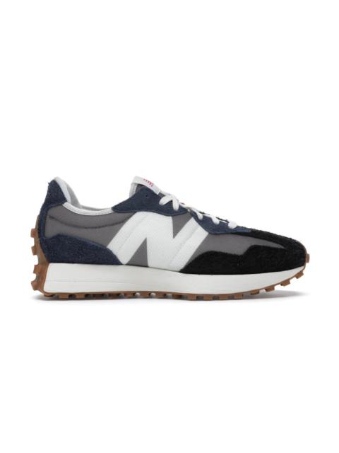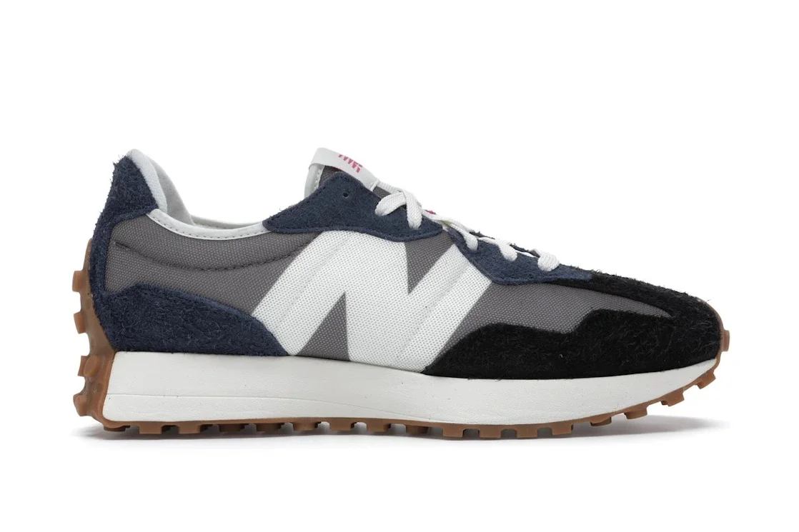 The New Balance 327 Grey Navy Black is dressed in colors that blend the old and the new, with design cues that recollect back vintage runners from the 1970s. The lateral side of the top, which is made of grey nylon with blue and black hairy suede overlays, is highlighted by an oversized 'N' logo in a white color scheme. Additionally, the model features a monochrome white midsole and a brown outsole, while its brandings include an "NB" emblem on the padded tongue, and "New Balance " text on the heel counter. A fuchsia eye stay on the medial side adds to its overall appearance. The New Balance 327 Grey Navy Black was released on 11th July 2020 and retailed at $100. - Style MS327SFB - Colorway Grey/Navy-Black - Retail Price 100 - Release Date 2020-07-11 - Featured false