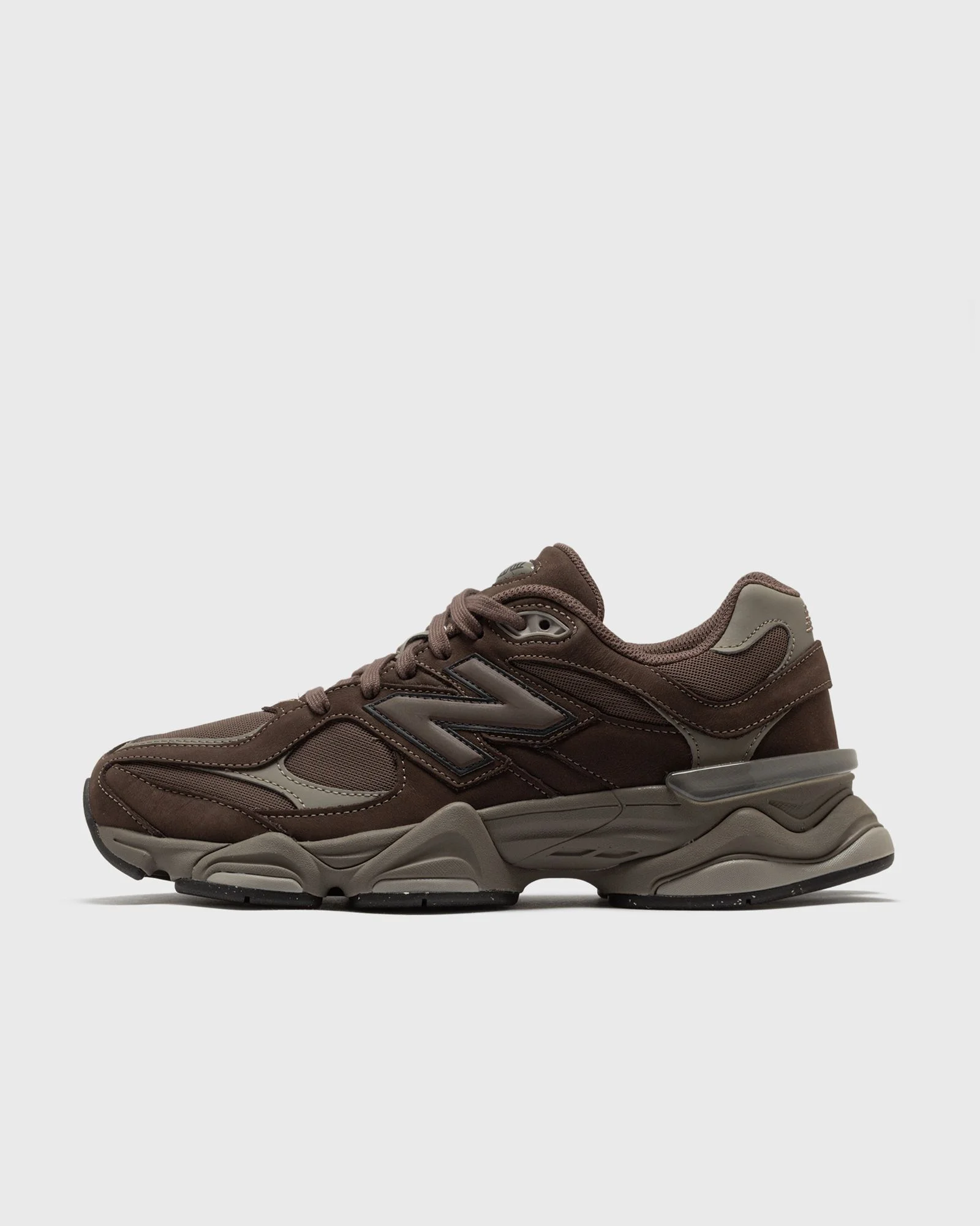 The New Balance 9060 reinterprets familiar elements of the label's iconic 99X models, drawing inspiration from the futuristic, visible aesthetics of the Y2K era. Stabilizers throughout the upper convey a sense of visible movement, while wave-like lines and scaled-down proportions on a molded pod midsole emphasize the familiar ABZORB and SBS cushioning systems. - Dual-density midsole with ABZORB and SBS cushioning - Transparent CR element at the heel - Mesh upper with suede inserts Article number: U9060493 Gender: men Color: CORTADO Material: 30% Rubber, 30% Leather, 40% Synthetic/Textile