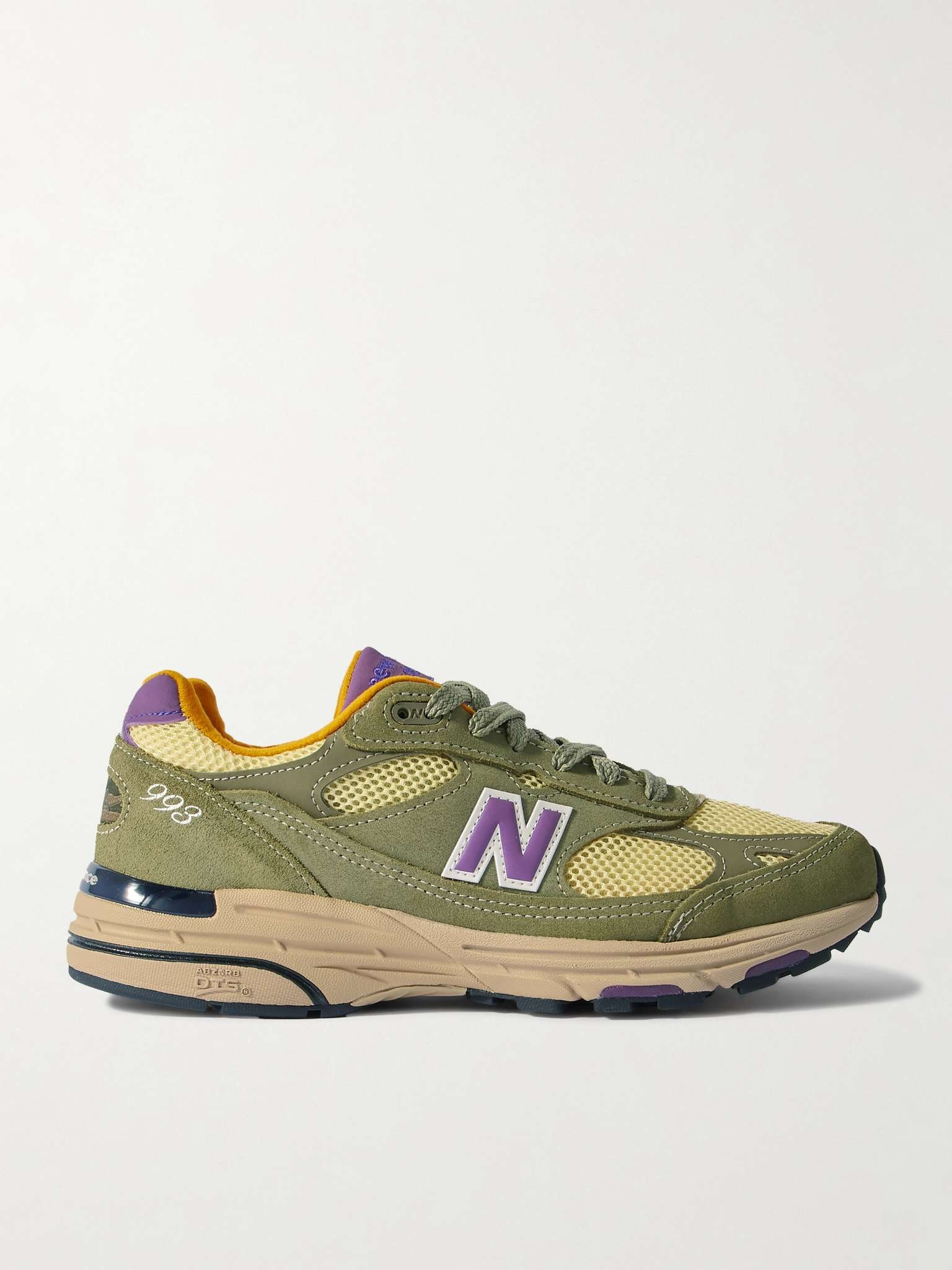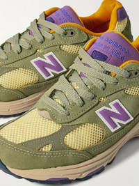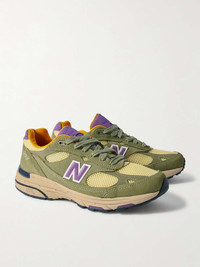 Since he was appointed Creative Director, Teddy Santis has made New Balance the brand to beat – the Made in USA line is a favourite of fashion's in-the-know. These '993' sneakers are made from leather, mesh and suede in an earthy colourway and have signature ABZORB soles. Size & Fit - UK 5 = US 5.5/ EU 38 - UK 5.5 = US 6/ EU 38.5 - UK 6 = US 6.5/ EU 39.5 - UK 6.5 = US 7/ EU 40 - UK 7 = US 7.5/ EU 40.5 - UK 7.5 = US 8/ EU 41.5 - UK 8 = US 8.5/ EU 42 - UK 8.5 = US 9/ EU 42.5 - UK 9 = US 9.5/ EU 43 - UK 9.5 = US 10/ EU 44 - UK 10 = US 10.5/ EU 44.5 - UK 10.5 = US 11/ EU 45 - UK 11 = US 11.5/ EU 45.5 - UK 11.5 = US 12/ EU 46.5 - UK 12 = US 12.5/ EU 47 - UK 12.5 = US 13/ EU 47.5 - UK 13.5 = US 14/ EU 49 Details & Care - Green suede (Pig), purple leather (Cow), pale-yellow mesh - Lace-up - Designer colour: Olive Leaf/ Maize - Style number: U993OL - New Balance follows its own size guide, therefore the size stated on the box will differ from the one provided in our size chart. To receive your correct fit, please refer to Size & Fit notes
