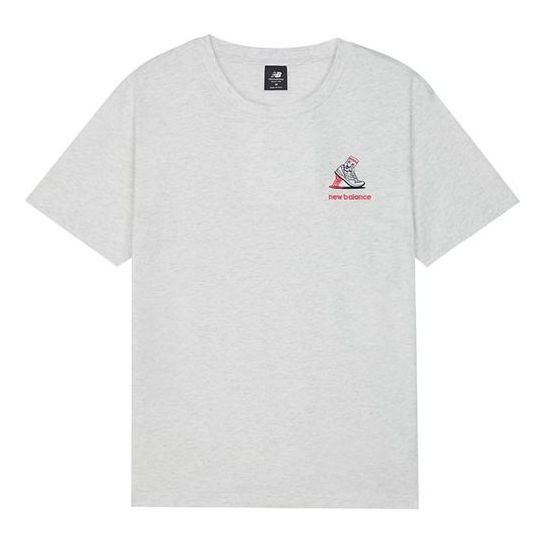 New Balance Logo Embroidered Round Neck Short Sleeve Gray T-Shirt AMT13573-SAH
