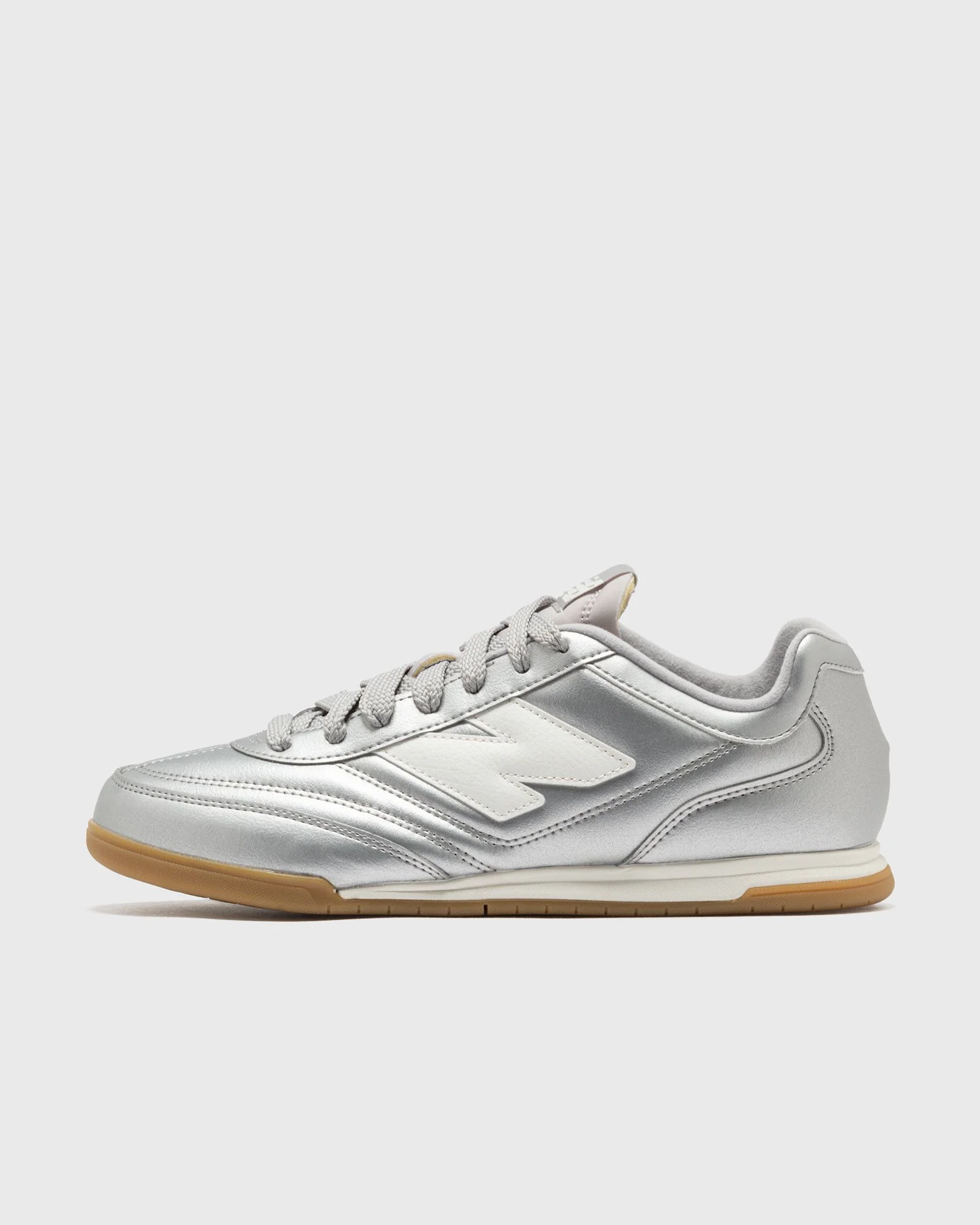 Inspired by runners from the 1970s, the New Balance RC42 brings simplicity, elegance and comfort together in one silhouette. Crafted from a high-quality on the upper, the sneaker comes with the signature embroidered N logo on the sidewalls and a gum outsole that adds a vintage touch. - Leather upper - Lace-up closure - Rubber outsole Article Number: URC42CA Gender: Men, Women Color: SILVER METALIC Material: Upper material: 100% Synthetic/Textile