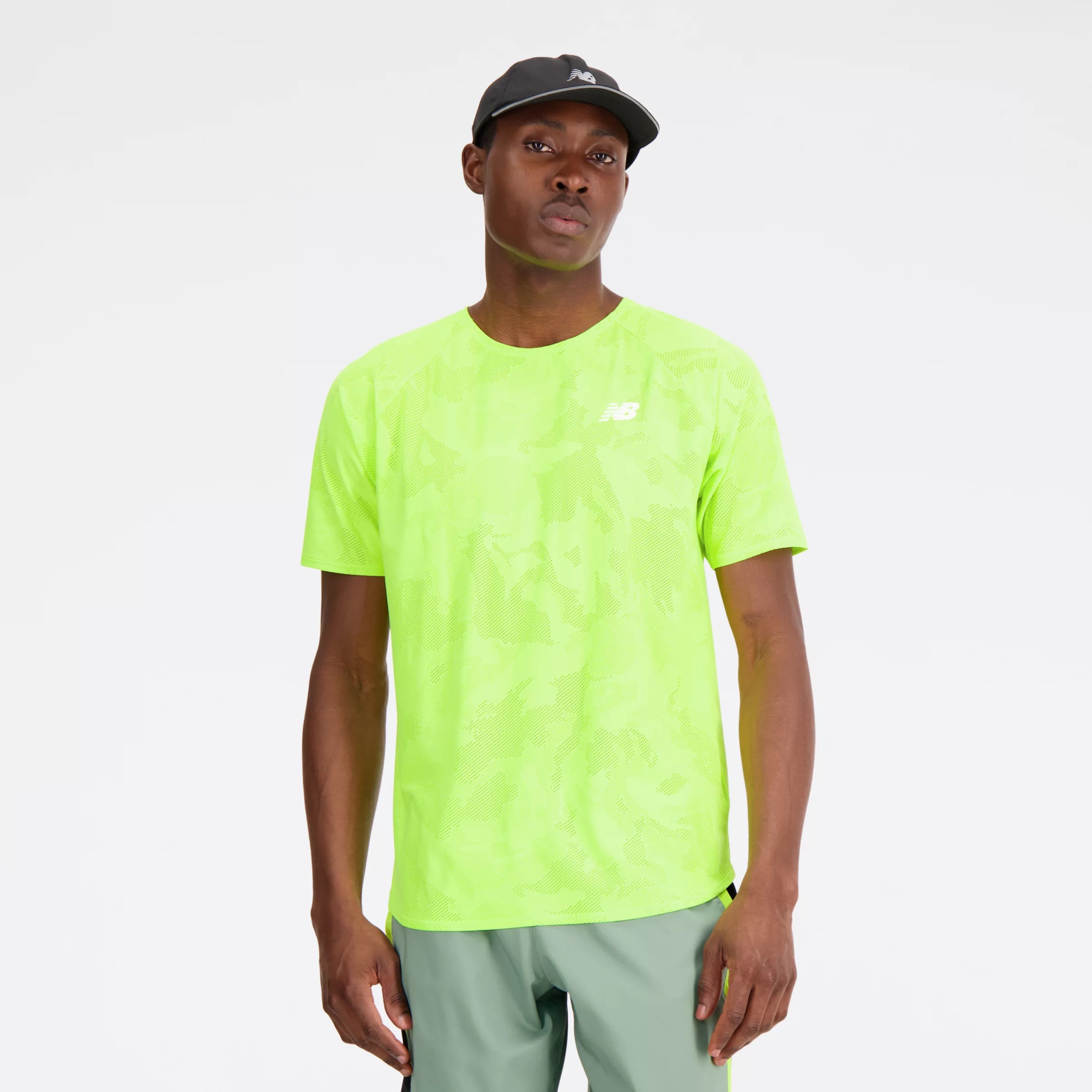 From your toughest training runs to casual jogs, the New Balance Q Speed Jacquard Short Sleeve has you covered. The lightweight polyester and spandex construction with jacquard knit facilitates air flow for impressive breathability. Combined with built-in NB ICEx fabric technology, this short sleeve shirt helps keep you dry and comfortable all day long. Product Details Features - NB ICEx fast-drying technology helps you stay cool - Polyknit construction - Athletic fit built to skim your chest, waist and hip — perfect for active movement with a fit that’s not too tight - Short sleeves - White reflective trims - 73% recycled polyester, 27% spandex - Imported Size & Fit - Size & Fit Guide Style #: MT33281THW