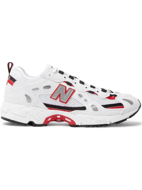 The New Balance 827 Stray Rats release a modern version of the 827 model combining retro elements, brown suede, and camouflage. Green hues that are included across the forward paneling are complemented with a vivid crimson and purple accent, respectively, along the laces and "N" emblem. Both the left and right pairs' webbing at the heel is decorated with camouflage patterns, and their branding is combined to form the name "Stray Rats" in large silver writing. The midsole is accentuated with a gray color scheme, completing its appearance. The tongue panel features an "827" text in purple. The New Balance 827 Stray Rats was released on 15th May 2020. It retailed at $156. - Style ML827SR2 - Colorway Brown/Green - Retail Price 156 - Release Date 2020-05-15 - Featured false