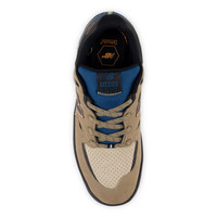 The first pro-endorsed skate shoe by Tiago Lemos features a mix of '90s skateboarding inspiration and New Balance heritage style. Features - FuelCell foam delivers a propulsive feel to help drive you forward - Durable rubber cup outsole - Design inspired by Tiago Lemos Material - Suede and mesh upper Style #: NM1010LC