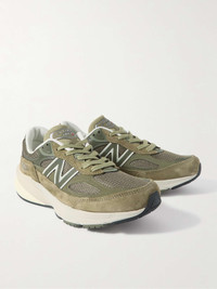 New Balance's '990v6' sneakers are proudly made in the USA. The brand's ENCAP midsole cushioning provides comfort and support, alongside FuelCell foam that helps propel you forward as you push off. They're detailed with the 'N' logo and reflective accents that increase visibility. Size & Fit - UK 5 = US 5.5/ EU 38 - UK 5.5 = US 6/ EU 38.5 - UK 6 = US 6.5/ EU 39.5 - UK 6.5 = US 7/ EU 40 - UK 7 = US 7.5/ EU 40.5 - UK 7.5 = US 8/ EU 41.5 - UK 8 = US 8.5/ EU 42 - UK 8.5 = US 9/ EU 42.5 - UK 9 = US 9.5/ EU 43 - UK 9.5 = US 10/ EU 44 - UK 10 = US 10.5/ EU 44.5 - UK 10.5 = US 11/ EU 45 - UK 11 = US 11.5/ EU 45.5 - UK 11.5 = US 12/ EU 46.5 - UK 12 = US 12.5/ EU 47 - UK 12.5 = US 13/ EU 47.5 - UK 13.5 = US 14/ EU 49 Details & Care - Tonal-green suede, mesh and leather - Lace-up - Designer colour: True Camo - Style number: U990TB6 - New Balance follows its own size guide, therefore the size stated on the box will differ from the one provided in our size chart. To receive your correct fit, please refer to Size & Fit notes