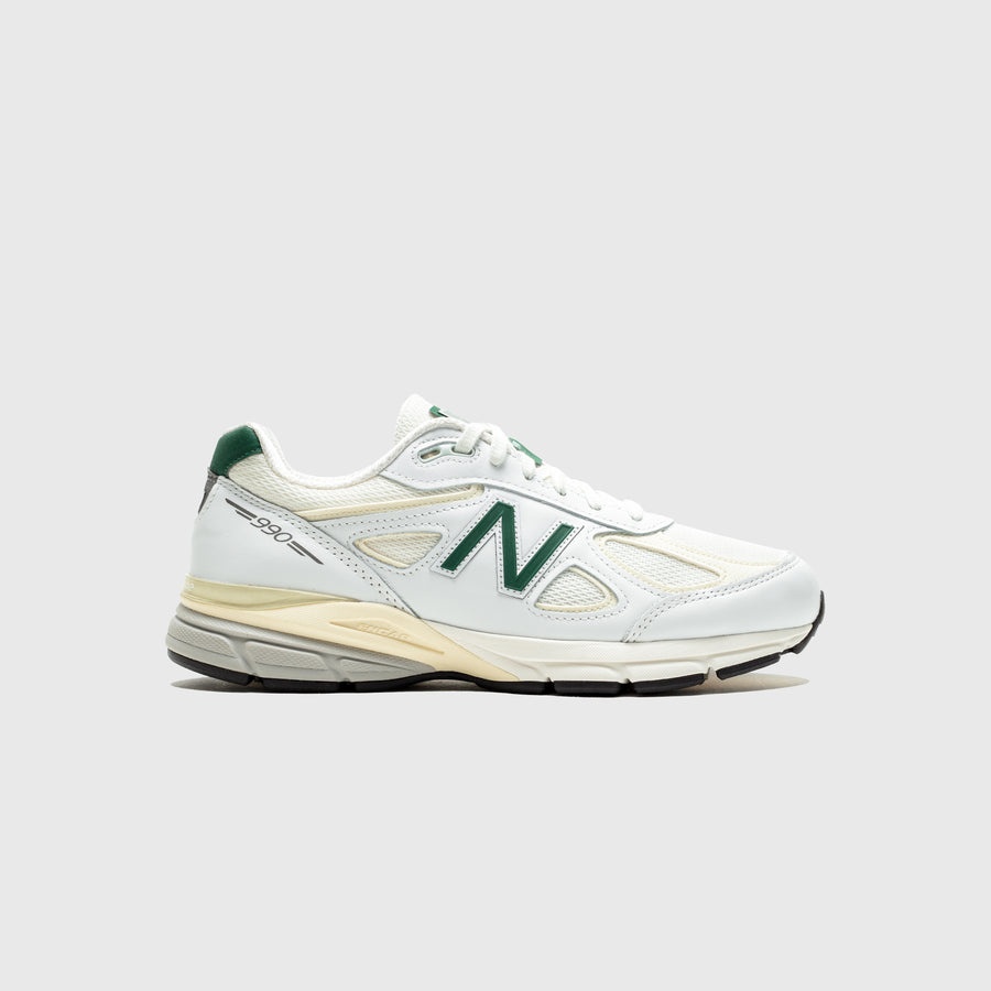 - U990TC4 - Calcium/Forest Green - The MADE in USA 990v4 featuresclassic leather construction, in white with forest green accents - Mesh upper - Leather overlays - Embossed "990" branding - 'NB' embossed at the heel - Reflective details - Lace closure - FuelCell foam - ENCAP midsole - Rubber outsole