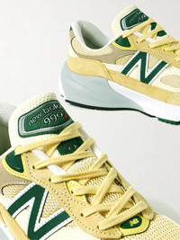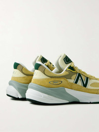 New Balance's '990v6' sneakers are part of the brand's 'MADE in USA' line designed by Teddy Santis. Inspired by '90s styles, they're cut from yellow mesh and trimmed with smooth suede and rubber. The chunky soles provide cushioning and traction. Size & Fit - US 5.5 = UK 5/ EU 38 - US 6 = UK 5.5/ EU 38.5 - US 6.5 = UK 6/ EU 39.5 - US 7 = UK 6.5/ EU 40 - US 7.5 = UK 7/ EU 40.5 - US 8 = UK 7.5/ EU 41.5 - US 8.5 = UK 8/ EU 42 - US 9 = UK 8.5/ EU 42.5 - US 9.5 = UK 9/ EU 43 - US 10 = UK 9.5/ EU 44 - US 10.5 = UK 10/ EU 44.5 - US 11 = UK 10.5/ EU 45 - US 11.5 = UK 11/ EU 45.5 - US 12 = UK 11.5/ EU 46.5 - US 12.5 = UK 12/ EU 47 - US 13 = UK 12.5/ EU 47.5 - US 14 = UK 13.5/ EU 49 Details & Care - Yellow, green and cream mesh and suede, green, tan and white leather - Lace-up - Style number: U990TE6 - New Balance follows its own size guide, therefore the size stated on the box will differ from the one provided in our size chart. To receive your correct fit, please refer to Size & Fit notes - This item has been imported