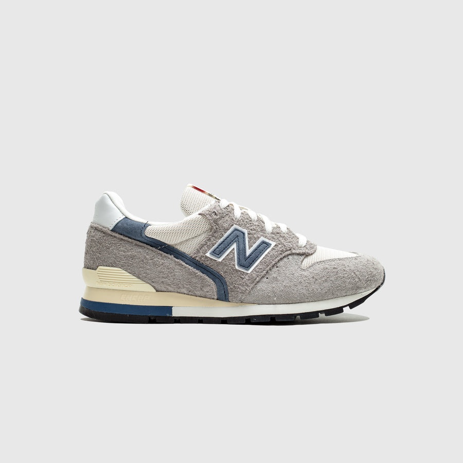 - U996TE - Marblehead/Navy - The MADE in USA 996, featuring a special-edition Grey Day colorway - Mesh upper - Hairy suede overlays - New Balance branding featured on the tongue, side, and heel - Rubber heel counter attachments - 3M accents - Lace closure - EVA midsole - Rubber outsole