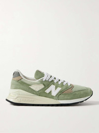 New Balance's ‘998’ sneakers launched in 1993 and are still one of the brand's most popular styles – they were the first pair to feature the comfortable and supportive ABZORB midsoles. This ‘MADE in USA’ version is assembled from suede and breathable mesh and trimmed with smooth leather and rubber. Size & Fit - UK 5 = US 5.5/ EU 38 - UK 5.5 = US 6/ EU 38.5 - UK 6 = US 6.5/ EU 39.5 - UK 6.5 = US 7/ EU 40 - UK 7 = US 7.5/ EU 40.5 - UK 7.5 = US 8/ EU 41.5 - UK 8 = US 8.5/ EU 42 - UK 8.5 = US 9/ EU 42.5 - UK 9 = US 9.5/ EU 43 - UK 9.5 = US 10/ EU 44 - UK 10 = US 10.5/ EU 44.5 - UK 10.5 = US 11/ EU 45 - UK 11 = US 11.5/ EU 45.5 - UK 11.5 = US 12/ EU 46.5 - UK 12 = US 12.5/ EU 47 - UK 12.5 = US 13/ EU 47.5 - UK 13.5 = US 14/ EU 49 Details & Care - Grey-green and taupe suede, leaf-green mesh, white leather, stone rubber - Lace-up - Style number: U998 - New Balance follows its own size guide, therefore the size stated on the box will differ from the one provided in our size chart. To receive your correct fit, please refer to Size & Fit notes