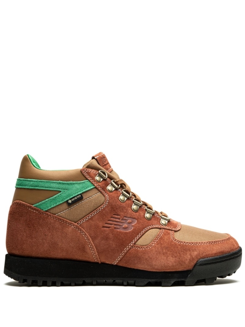 x Aimé Leon Dore Rainier hiking boots Launching as part of an outdoor-inspired capsule collection, the Aimé Leon Dore x New Balance Rainier presents a modern interpretation of the hiking boot worn by mountaineer Lou Whittaker when he climbed Mount Everest in 1982. The Rainier was originally designed as a lightweight alternative that offered climbing and hiking-specific performance. Aimé Leon Dore’s take on the style adds a touch of refinement to the rugged makeup, with a suede and Cordura® nylon upper construction and updated colourways. GORE-TEX® is utilized throughout, for weather-resistant functionality, while a Vibram® outsole offers durable, sure-footed traction. Imported Composition Sole: Rubber 100% Lining: Fabric 100% Outer: Suede 100%, Fabric 100%