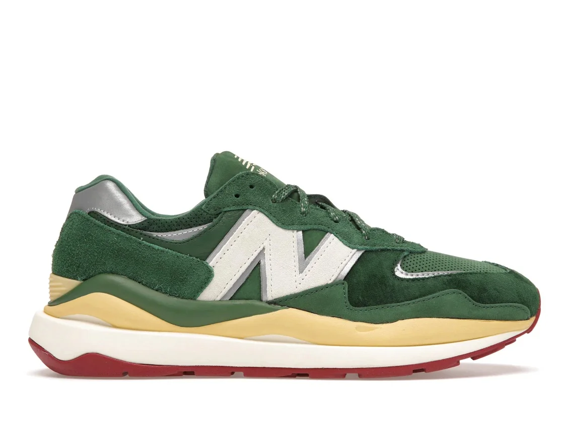 New Balance partnered with South Central LA brand Bricks & Wood to release the New Balance 57/40 Bricks & Wood. The upper of the New Balance 57/40 Bricks & Wood is made of a Lush Green premium pig suede with reflective materials on the New Balance side logo and heel. A sculptural sole displaying a beige, Lush Green, white, and pink color scheme finishes off this collaborative model. The New Balance 57/40 Bricks & Wood released in June of 2021 and retailed for $150. - Style M5740BW - Colorway Forest Green/Natural/White - Retail Price 140 - Release Date 2021-05-28 - Featured false