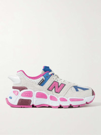 - Off-white brushed-suede, claret rubber, white mesh, blue and pink leather - Lace-up - Style number: MS574YSA - New Balance follows its own size guide, therefore the size stated on the box will differ from the one provided in our size chart. To receive your correct fit, please refer to Size & Fit notes
