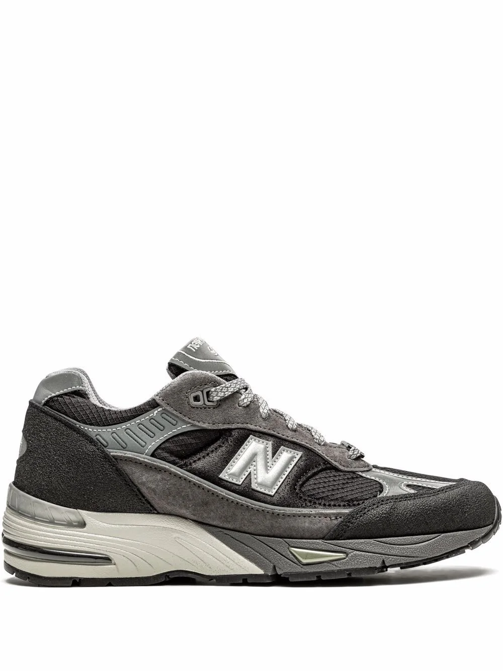 x Slam Jam M991SJM sneakers The 991 was released 20 years ago, but stills a favourite for many sneaker lovers. This time, New Balance teamed up with Slam Jam for a new version of the sneaker - in black and grey - covering the upper, which features rubberised caps on the toe and heel counter, plush pigskin suede overlays and ripstop in place of the usual mesh. Reflective accents on the piping and N branding complete it with a nod to the shoe’s technical roots. Imported Composition Leather 100%