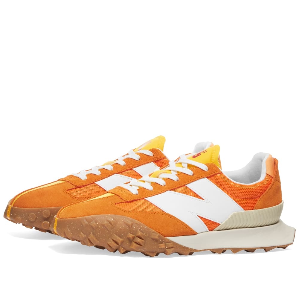 Inspired by the technical optimism of concept cars from the 70’s, the New Balance XC-72 pushes sneaker design into unexplored territory. The bold orange uppers are made from textile and overlaid with hairy suede, then detailed with a vertically split outsole that borrows aspects from two different silhouettes in the brand’s line-up – the XC15’s gripper and the 375’s studded pattern. You’ll also discover a stability heel clip featuring the 620’s herringbone pattern, while signature branding on the side wall signs off the look. - Textile Uppers - Suede Overlays - Rubber Outsole