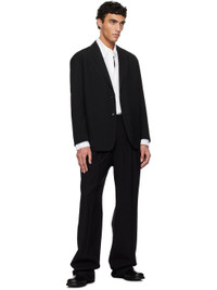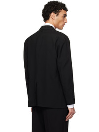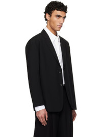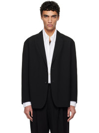 Wool delaine blazer. · Notched lapel · Button closure · Seam pockets · Dropped shoulders · Logo patch at cuff · Central vent at back hem · Welt pockets at interior · Partial chiffon and satin lining · Logo-engraved horn hardware Part of the N.HOOLYWOOD COMPILE collection. Supplier color: Black Body: 100% wool. Lining: 100% polyester. Lining 2: 100% acetate. Lining 3: 55% cupro, 45% polyester. Made in Japan 251992M195000