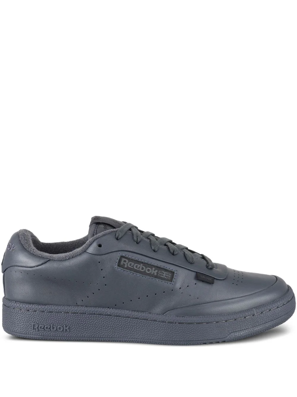 x Reebok Club C leather sneakers Highlights - Charcoal grey - Leather upper - Perforated detailing - Lace-up fastening - Flat-rubber sole - Reebok branding Imported Composition Sole: Rubber 100% Lining: Fabric 100% Outer: Calf Leather 100%
