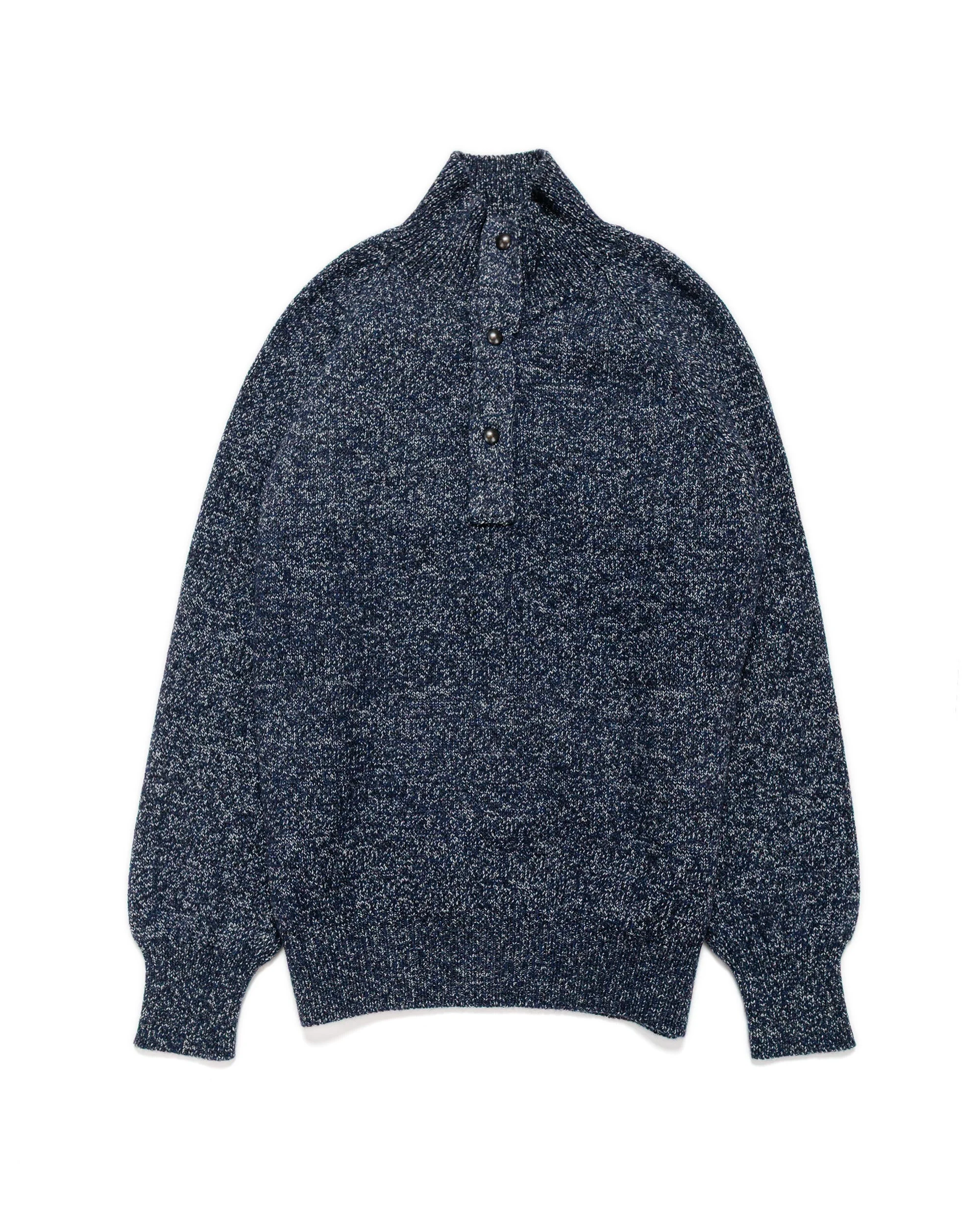 Another colourway?! My goodness this piece is absolutely haunting me. Cotton wool, high neck, snap buttons, this is just begging to be worn. A piece that will 100% become a go to in your wardrobe fall, winter AND spring. The sweaters to defeat all sweaters. DETAILS - British & South American wool cotton blend knit, with colouring inspired by American beach jackets from 1930s to 1960s - Follows specifications & details seen in cadet knitwear from that era - High neck - Snap button closure - Ribbed neck, cuffs & hem - 85% wool 15% cotton - Made in Japan - Model is 6’2” (189cm), 160lbs (73kg) and wearing L