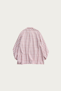 This long-zip pullover shirt is crafted from Italian deadstock fabric, combining high-strand, tightly twisted fine yarn with decorative yarn. The design references a 1940s dress shirt pattern, redesigned for a simple yet stylish look that can be worn casually. The fabric is woven with a slightly softer weave for increased breathability, giving it a distinctive vintage feel. It features a large kangaroo pocket, and when unzipped, can be worn like a blouson. It's difficult to create this type of fabric these days, making it a labor-intensive process, and you can enjoy the rare texture that only deadstock can offer.