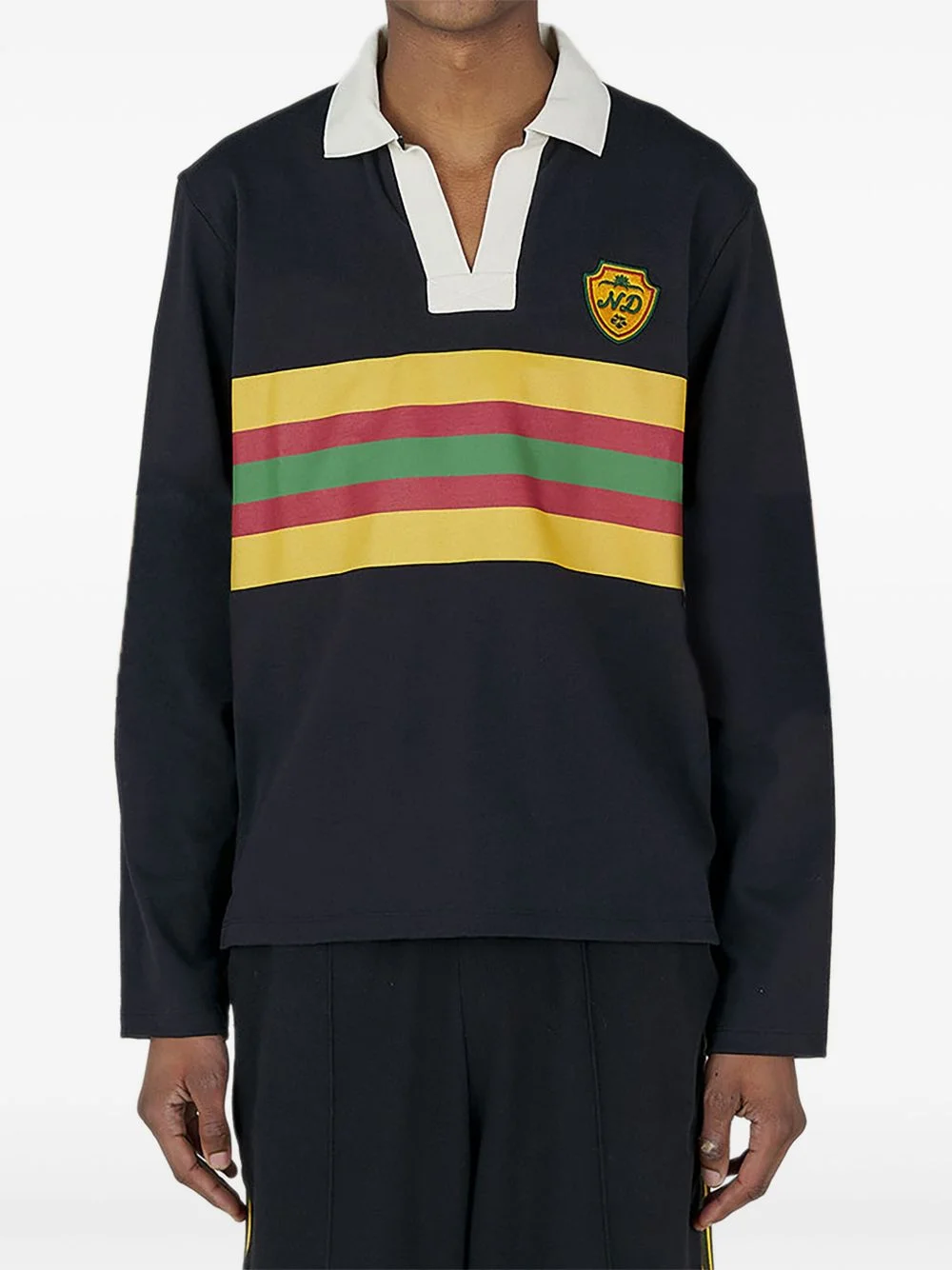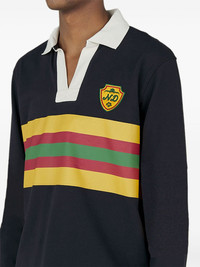 striped logo-patch polo shirt Highlights - Black - Striped design - Logo patch - V-neck - Long sleeves - Polo collar Imported Composition Cotton 100% Washing instructions Read Manufacturer Guidelines