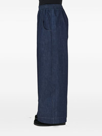 wide-leg jeans Highlights - Indigo blue - Elasticated waistband - Side slit pockets - Rear patch pocket - Wide leg - Panelled design Made in United Kingdom Composition Fabric 100% Washing instructions Read Manufacturer Guidelines