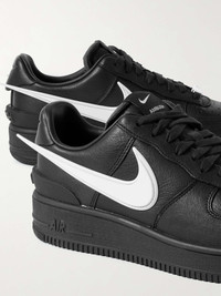 Nike partners with Japanese label AMBUSH® to add volume to the iconic 'Air Force 1' sneakers. This leather pair is detailed with a statement rubber 'Swoosh' that extends beyond the heel to evoke a sense of motion. Size & Fit - US 4 = UK 3.5/ EU 36 - US 4.5 = UK 4/ EU 36.5 - US 5 = UK 4.5/ EU 37.5 - US 5.5 = UK 5/ EU 38 - US 6 = UK 5.5/ EU 38.5 - US 6.5 = UK 6/ EU 39 - US 7 = UK 6/ EU 40 - US 7.5 = UK 6.5/ EU 40.5 - US 8 = UK 7/ EU 41 - US 8.5 = UK 7.5/ EU 42 - US 9 = UK 8/ EU 42.5 - US 9.5 = UK 8.5/ EU 43 - US 10 = UK 9/ EU 44 - US 10.5 = UK 9.5/ EU 44.5 - US 11 = UK 10/ EU 45 - US 11.5 = UK 10.5/ EU 45.5 - US 12 = UK 11/ EU 46 - US 12.5 = UK 11.5/ EU 47 - US 13 = UK 12/ EU 47.5 - US 13.5 = UK 12.5/ EU 48 - US 14 = UK 13/ EU 48.5 Details & Care - Black leather, white rubber - Lace-up - Designer colour: Black/ Phantom - Style number: DV3464-001 - Nike follows its own size guide, therefore the size stated on the box will differ from the one provided in our size chart. To receive your correct fit, please refer to Size & Fit notes - This item has been imported